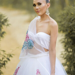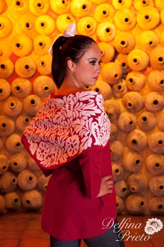 Textil Étnico, que conjuga telares y colores de la iconografía de las bellas regiones de Oaxaca con la libertad de un bordado, valorando el arte de las grandes artesanas Oaxaqueñas.