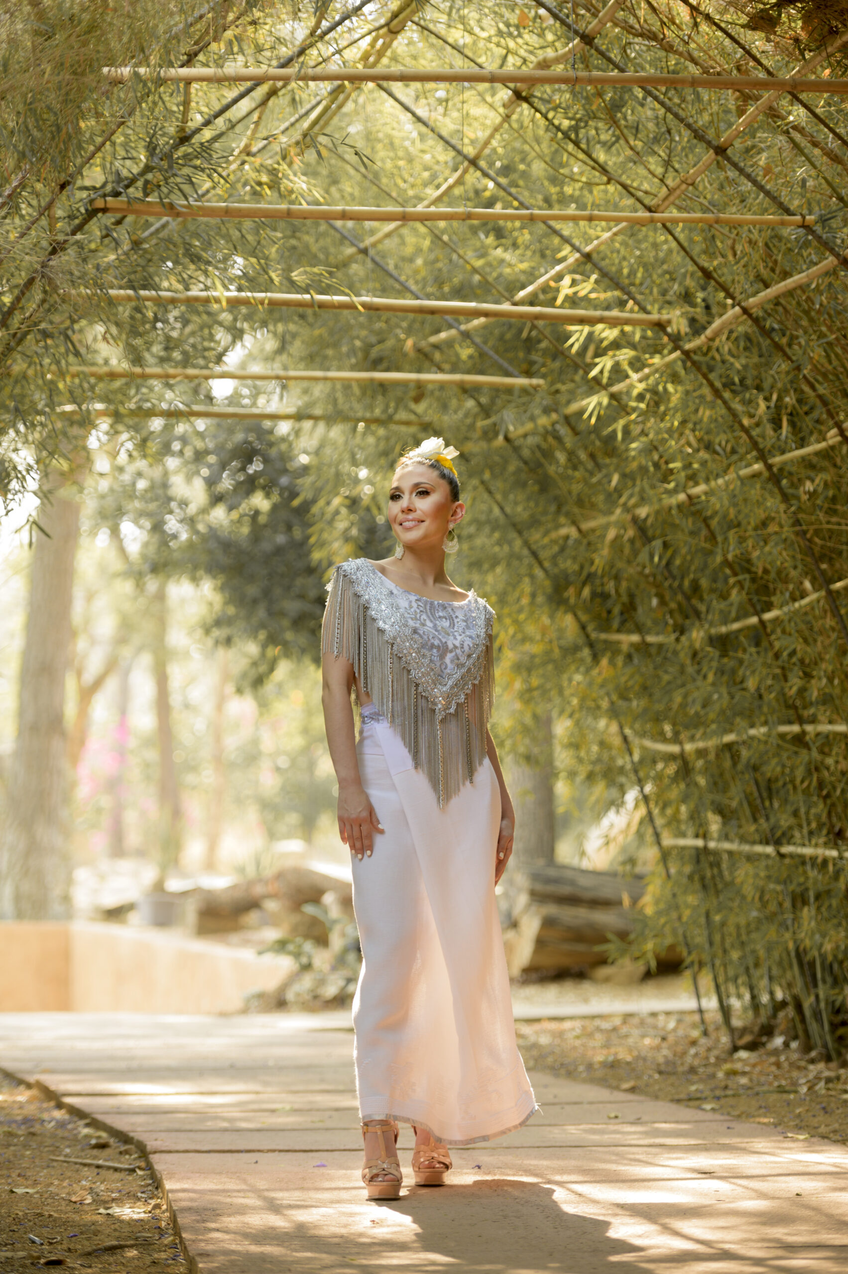 Mañanita étnica de una sola pieza en lino de bambú, terminada con punto perdido original del Istmo de Tehuantepec.