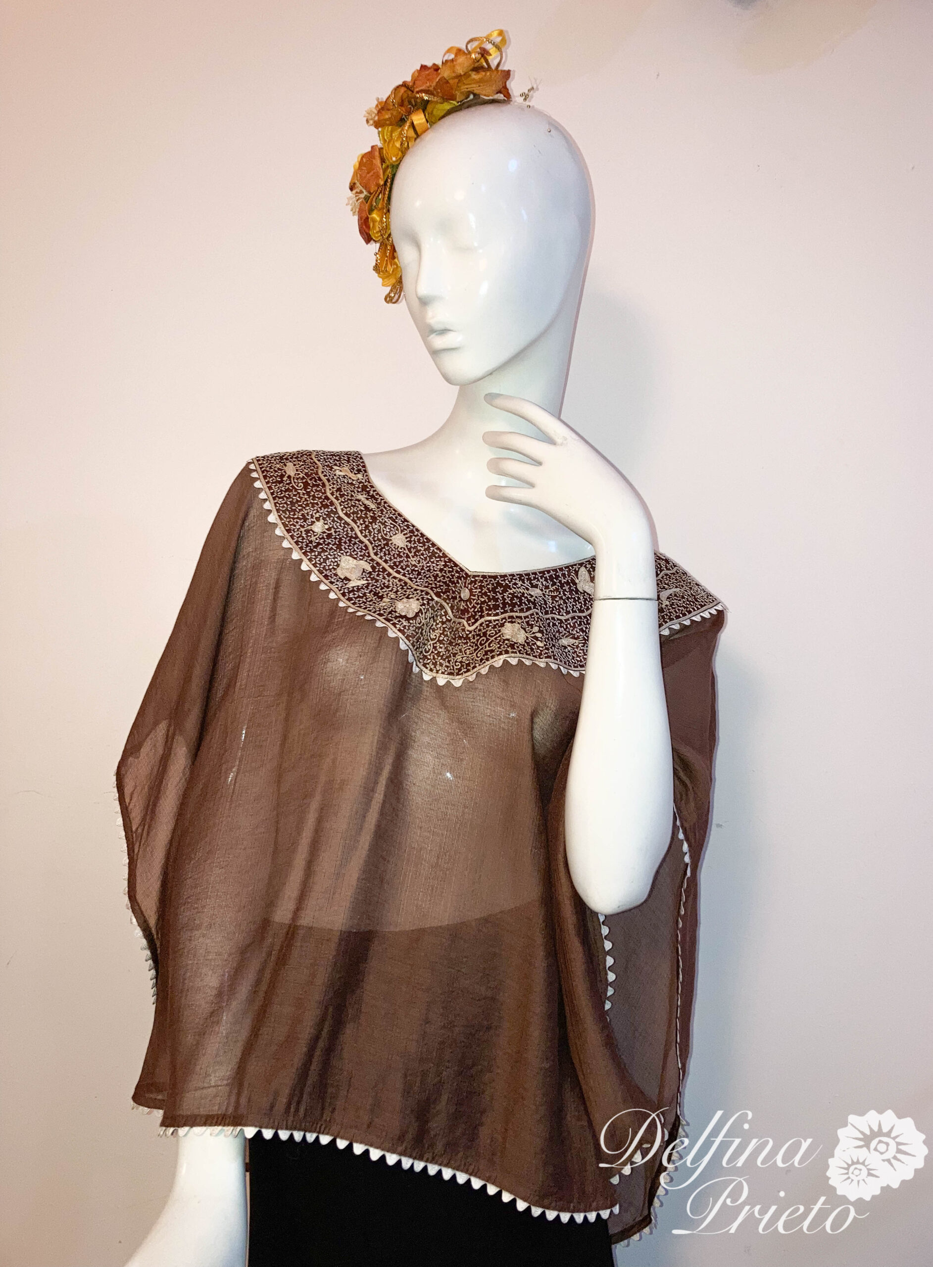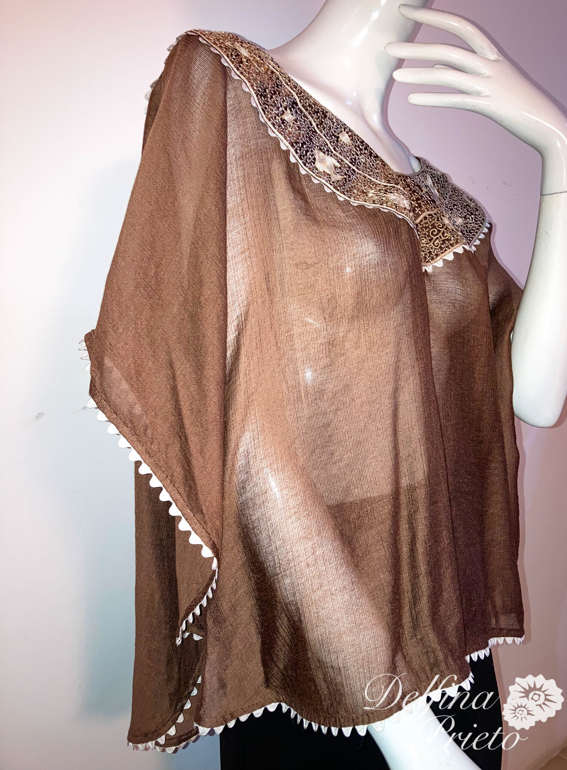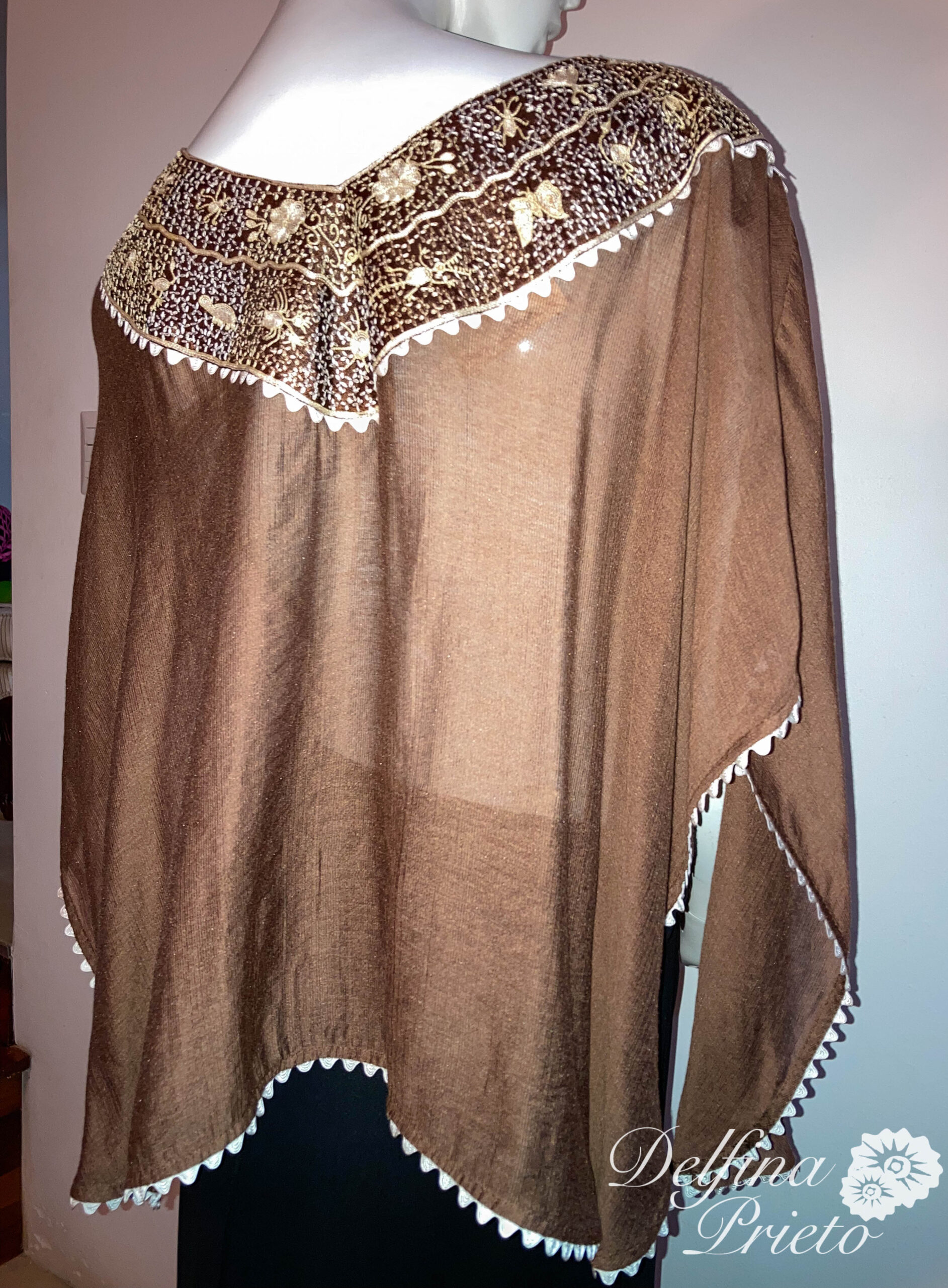 Mañanita étnica redonda de una sola pieza, con cuello en dos tonos  del huipil original de Pinotepa de Don Luis, costa Oaxaca.
